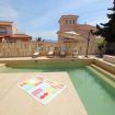 Como podéis ver dispone de jardín, mobiliario jardín, parcela vallada, acceso internet (wifi), secador, piscina privada, parking aire libre en mismo edificio, 2 Televisores.