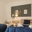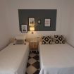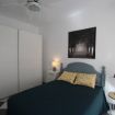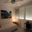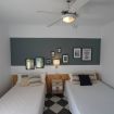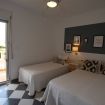 La tercera habitación cuenta con un precioso dormitorio para 3 personas con balcón, cama de matrimonio de 1,35 cm y cama individual de 90 cm, armario empotrado, mesita, perchero, lamparita de noche y ventilador.