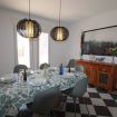 Tenemos un gran salón con dos sofás de tres plazas, televisión, chimenea de leña, mesa de centro y una iluminación natural impresionante ya que el salón se encuentra lleno de ventanas, seguido al salón tenemos el comedor donde se encuentra la mesa con ocho sillas y una decoración exquisita desde aquí llegamos a la cocina que se encuentra totalmente equipada para cocinar.