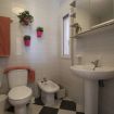 En la planta baja tenemos el primer dormitorio con cama de matrimonio de 1,35 cm, dos mesitas, armario y ventilador de techo. A la salida de este dormitorio se encuentra el baño de la planta de abajo que cuenta con bañera, bidet, wc y lavabo.