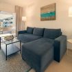 El apartamento está elegantemente decorado con muebles de diseño y amplios ventanales acristalados que crean un espacio superluminoso. Además, la seguridad en el bloque brinda tranquilidad.