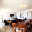 El salón, expansivo y adornado con varios sofás de piel, invita a la relajación y al entretenimiento bajo el calor de la chimenea y frente a un gran televisor. Junto a este, se encuentra una espaciosa cocina, perfectamente equipada para preparar deliciosas comidas para grupos grandes, y un comedor donde las historias y las risas fluyen tan libremente como el vino.